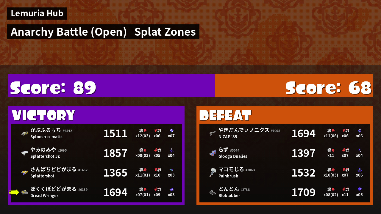 | Mode | Splat Zones - Anarchy Battle (Open) |