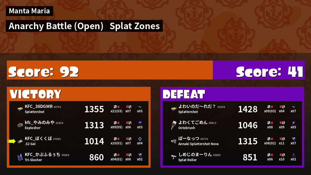| Mode | Splat Zones - Anarchy Battle (Open) | ||
