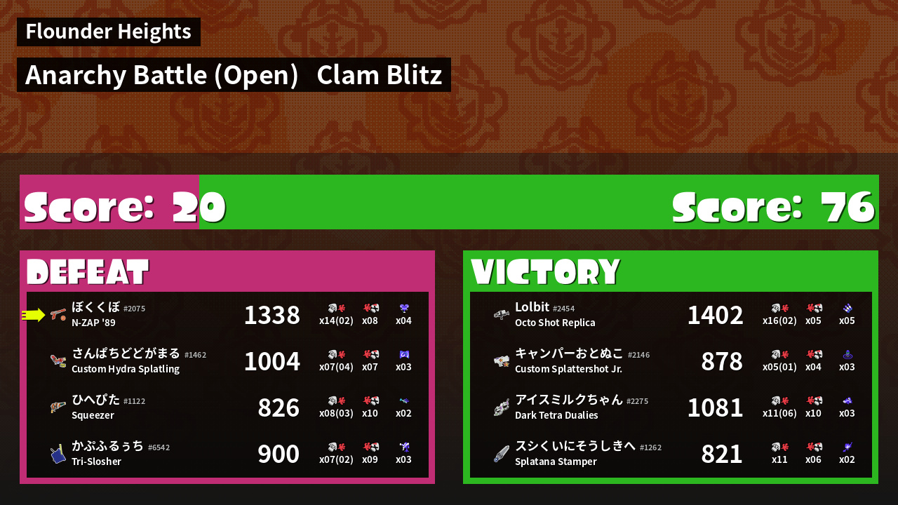 | Mode | Clam Blitz - Anarchy Battle (Open) | ||