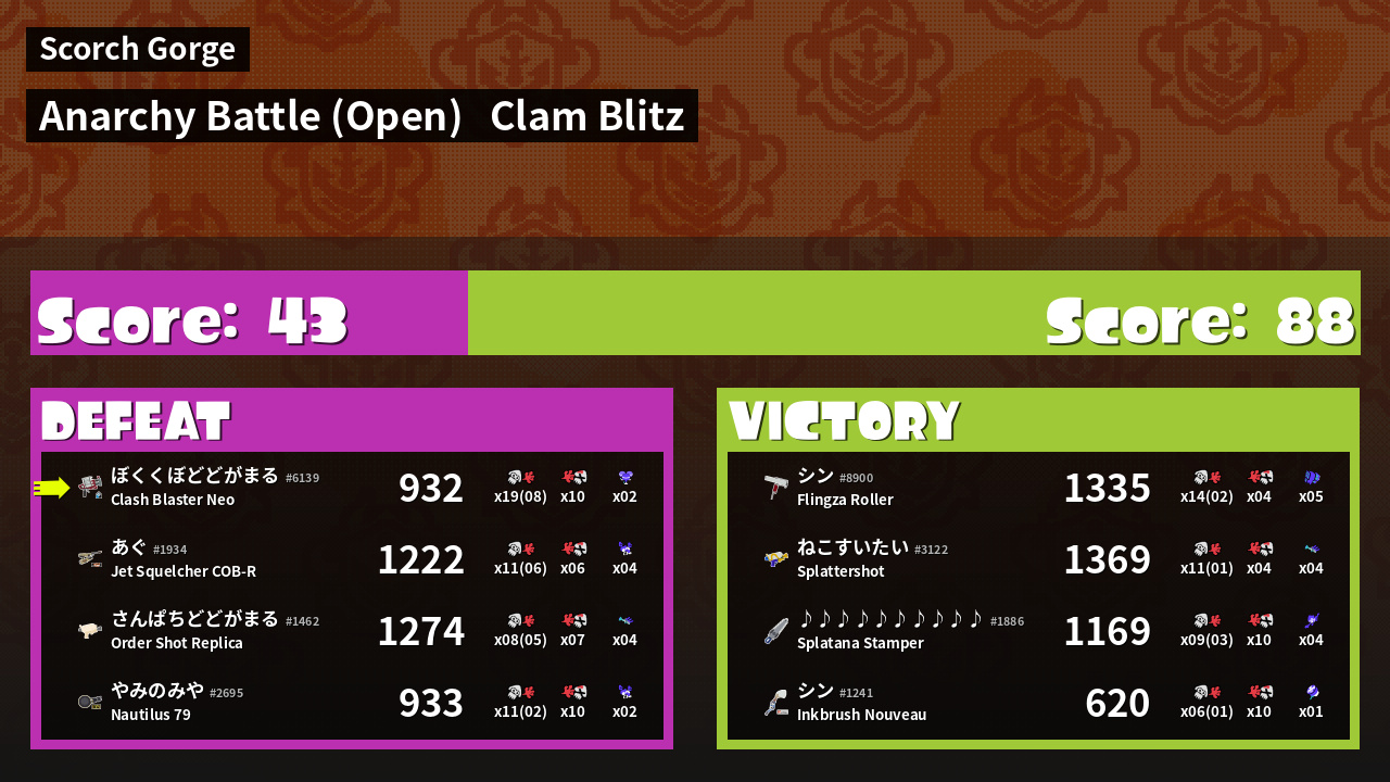| Mode | Clam Blitz - Anarchy Battle (Open) |