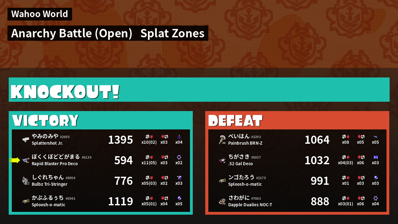 | Mode | Splat Zones - Anarchy Battle (Open) |
