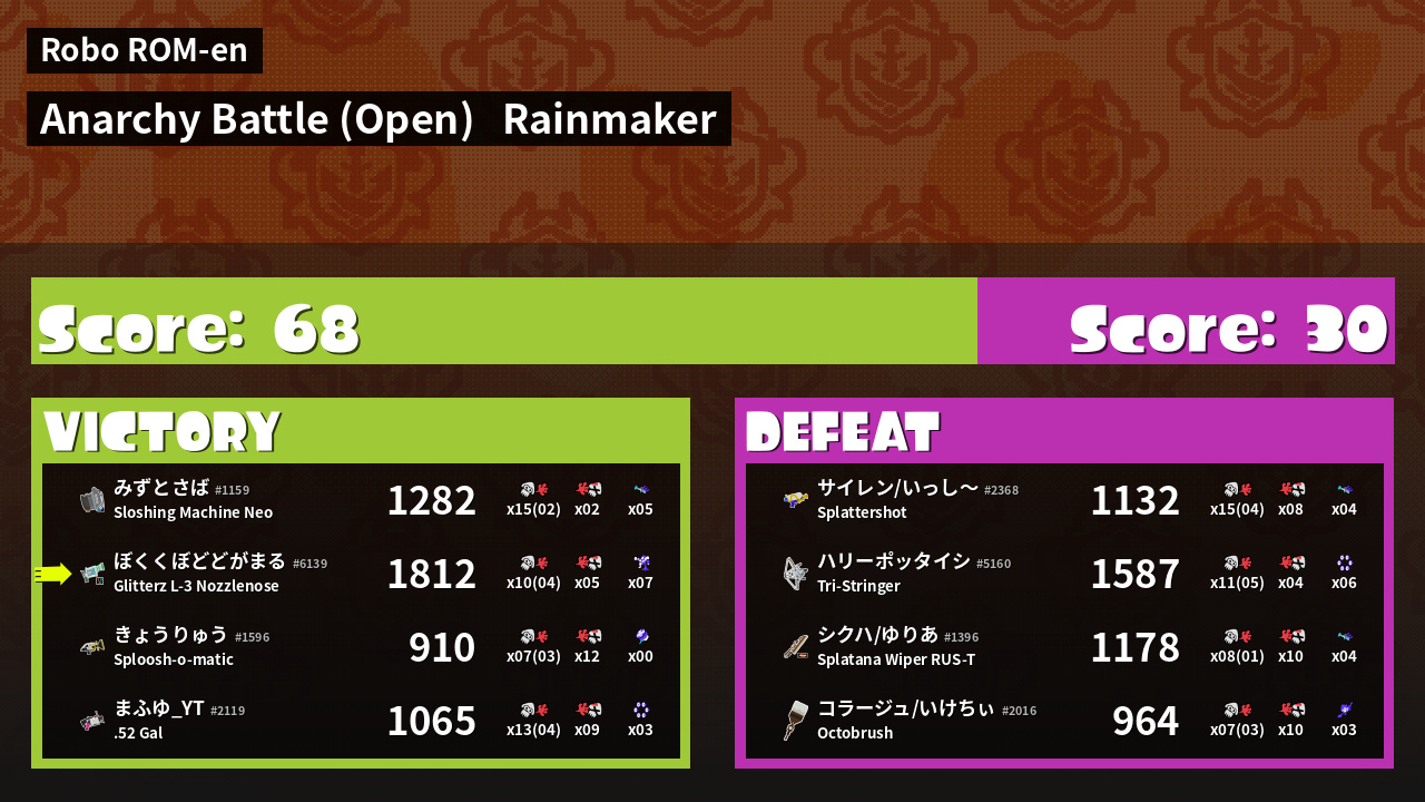 | Mode | Rainmaker - Anarchy Battle (Open) |