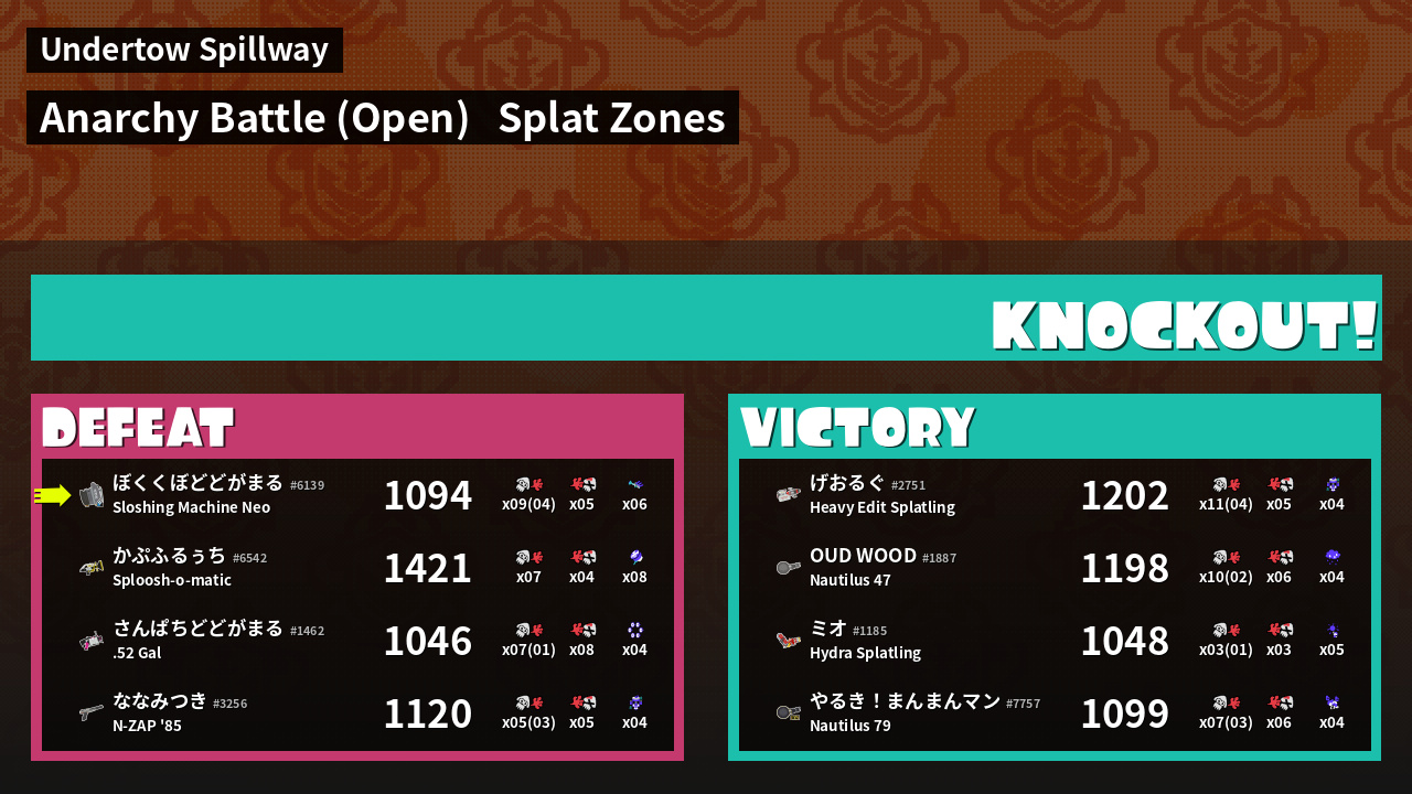 | Mode | Splat Zones - Anarchy Battle (Open) |