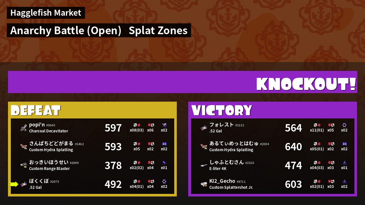 | Mode | Splat Zones - Anarchy Battle (Open) | ||