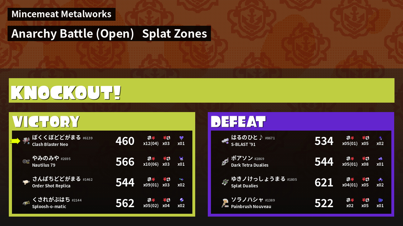 | Mode | Splat Zones - Anarchy Battle (Open) |