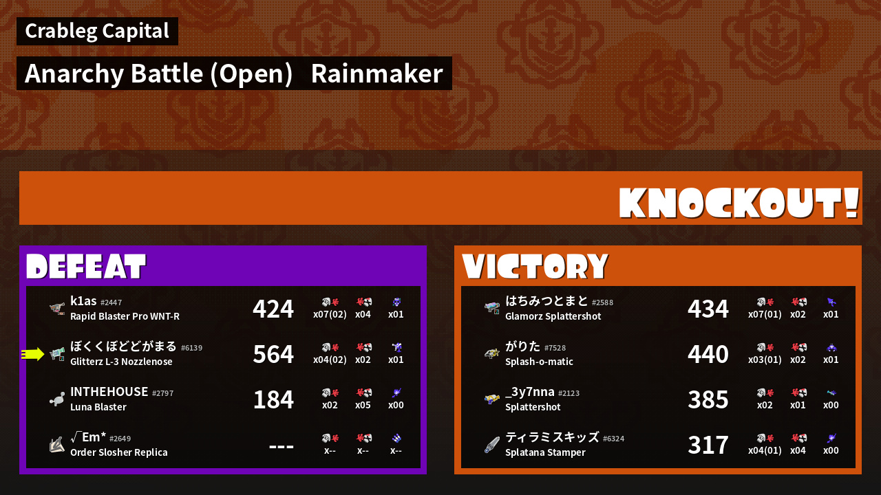 | Mode | Rainmaker - Anarchy Battle (Open) |
