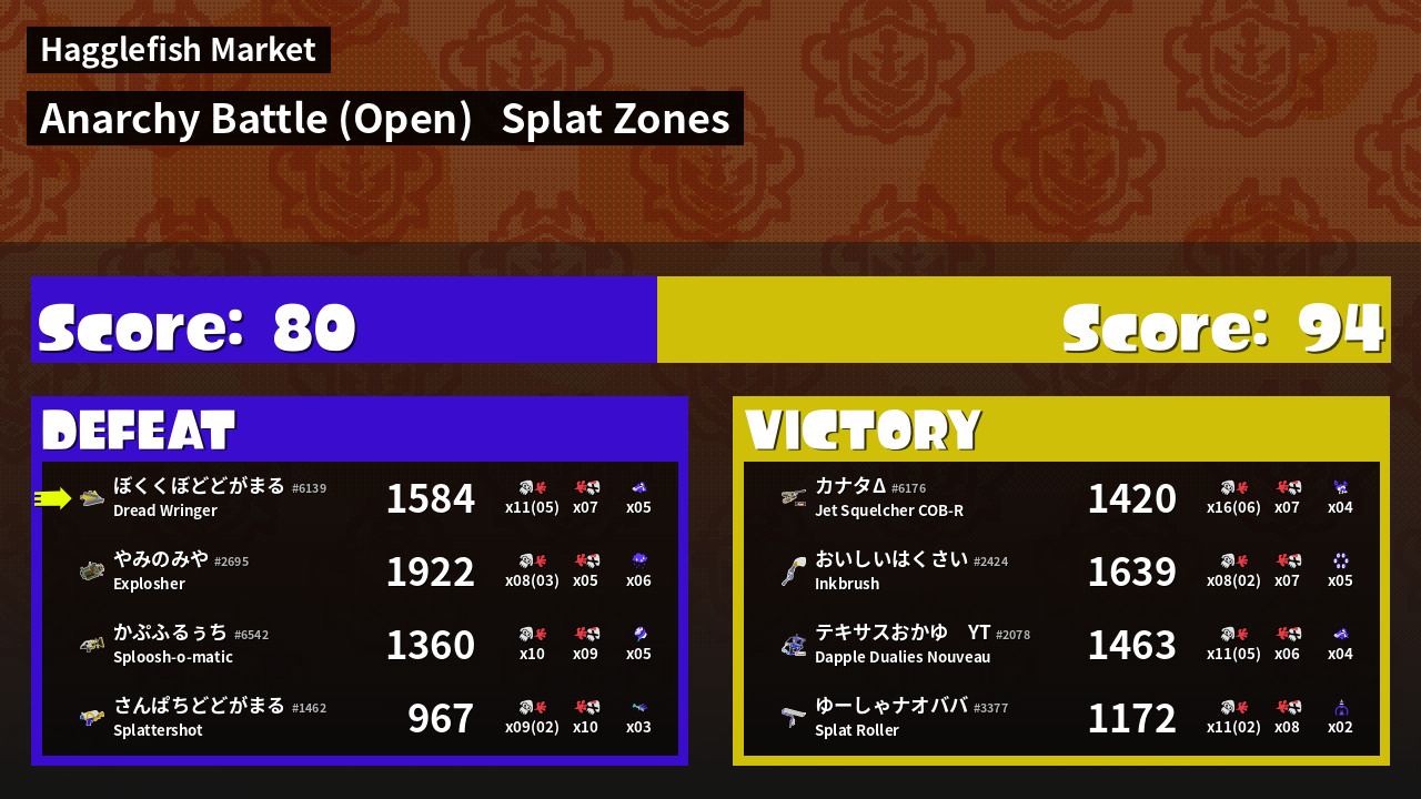 | Mode | Splat Zones - Anarchy Battle (Open) |