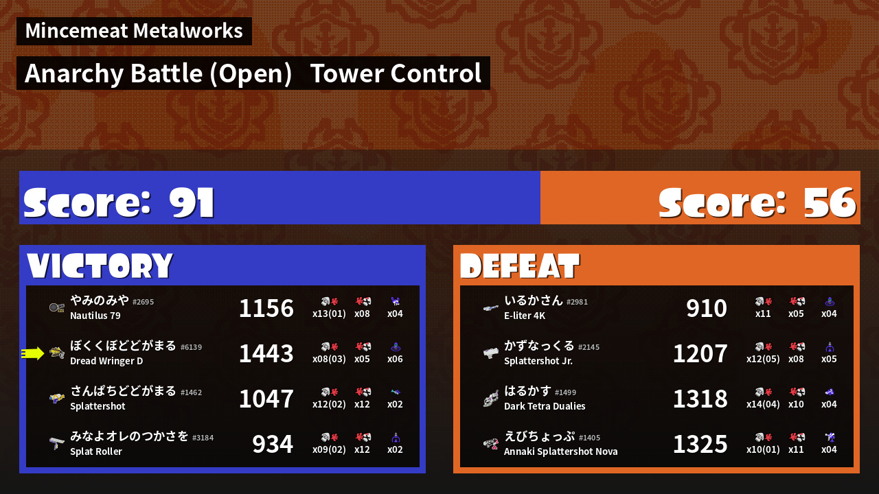 | Mode | Tower Control - Anarchy Battle (Open) |