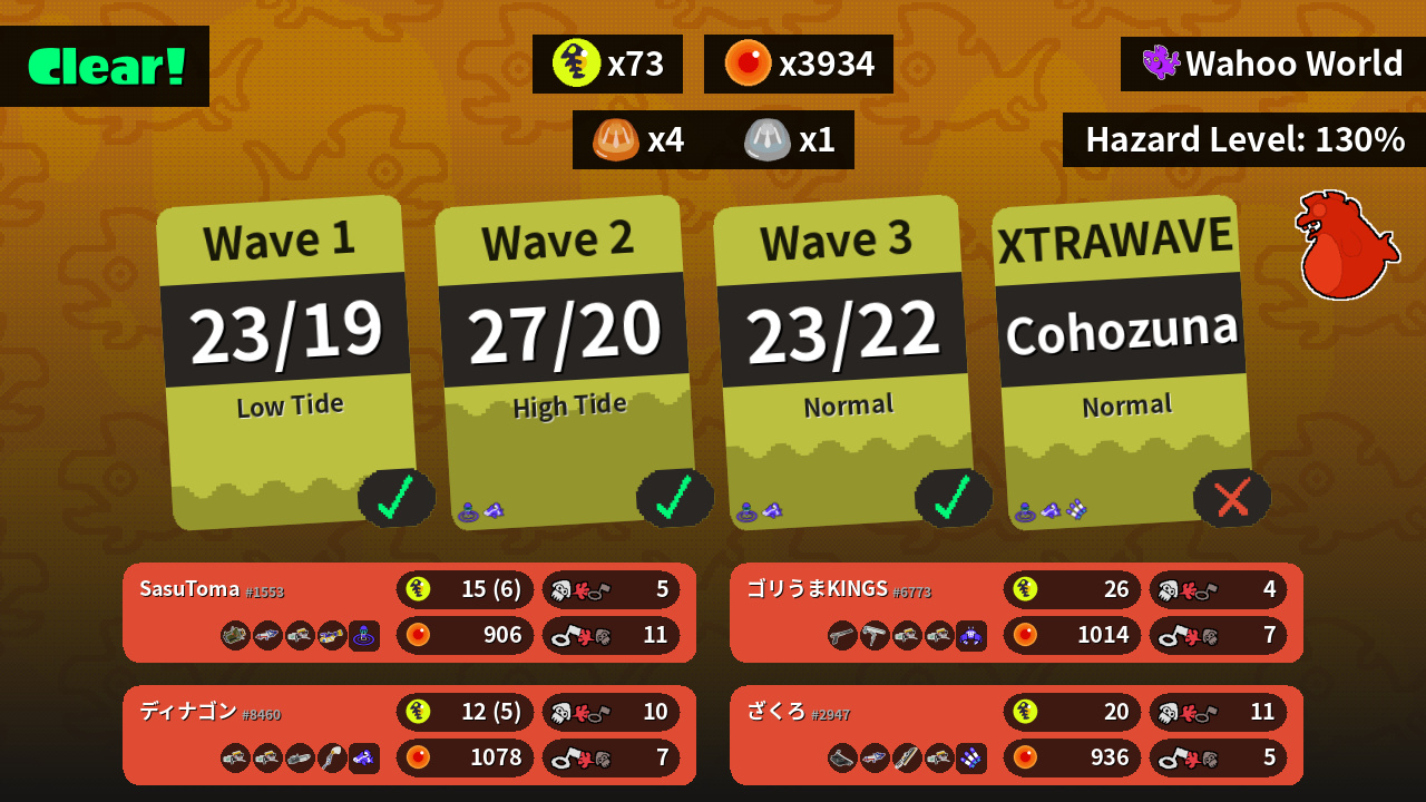 | Weapons | Explosher Splattershot Pro Grizzco Blaster Mini Splatling | N-ZAP '85 Dynamo Roller Grizzco Blaster Grizzco Blaster | Bloblobber Splattershot Pro Splatana Wiper Grizzco Blaster | Grizzco Blaster Grizzco Blaster Ballpoint Splatling Inkbrush |