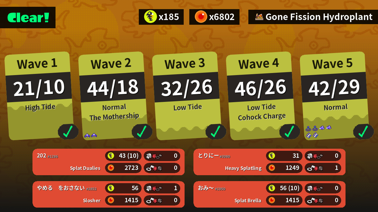 | Boss Salmonid | 36 | 19 | 9 | 12 |