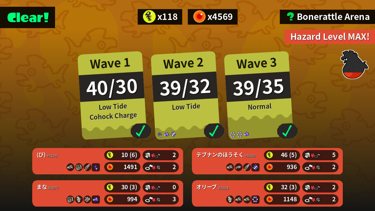 | Weapons | Grizzco Blaster Grizzco Slosher Grizzco Splatana | Grizzco Blaster Grizzco Charger Grizzco Splatana | Grizzco Stringer Grizzco Blaster Grizzco Blaster | Grizzco Slosher Grizzco Stringer Grizzco Dualies |