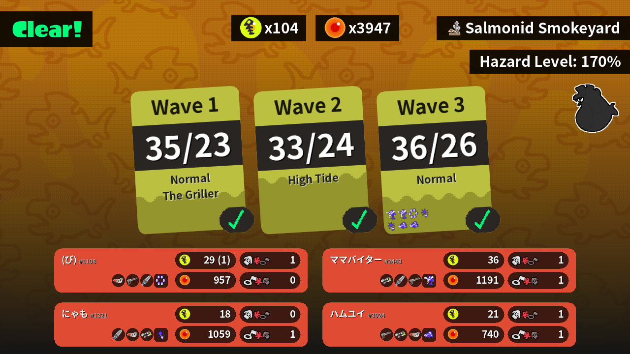 | Boss Salmonid | 16 | 12 | 14 | 10 |
