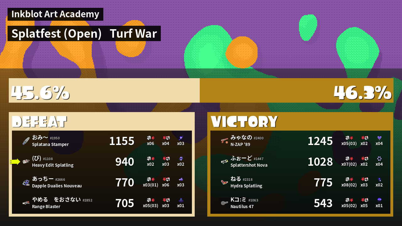 | Mode | Turf War - Splatfest (Open) | ||