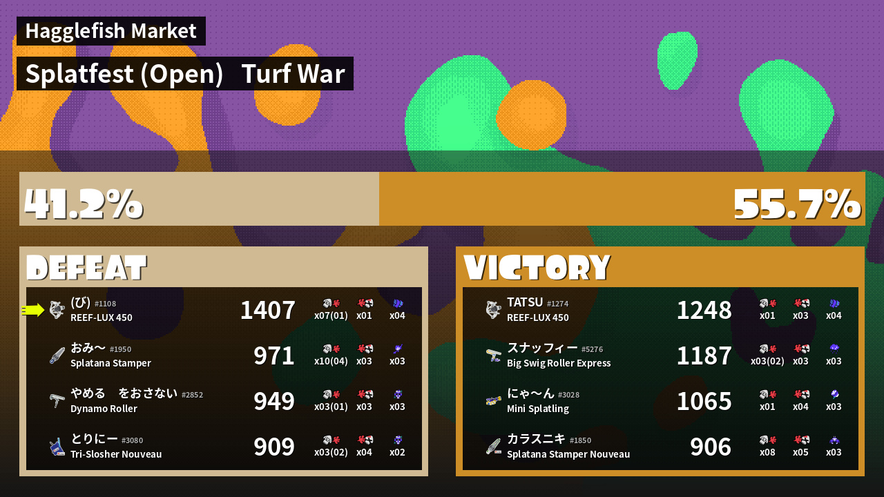 | Medals | #1 Turf Inker #1 Home-Base Inker #1 Enemy Splatter | ||