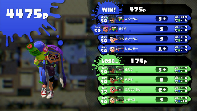 | Tentatek Splattershot | 50 | S+ | 11 / 6 > | 1.83 | 64.7% | |