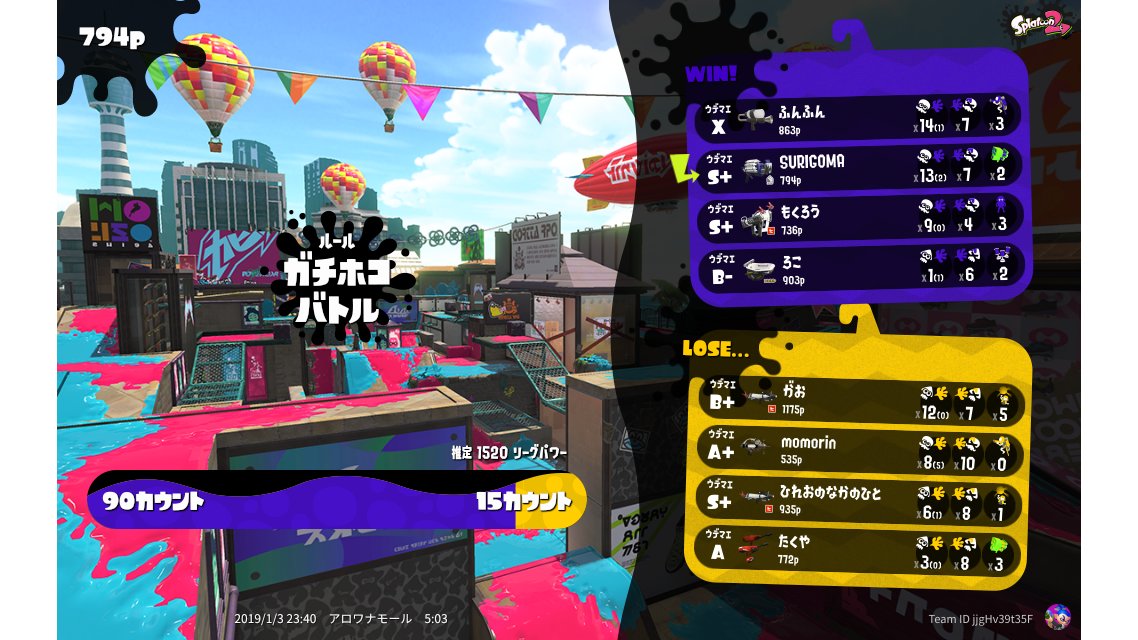 | Mode | Rainmaker - League Battle (Twin) | |||||||||||||||||||||||||||||||