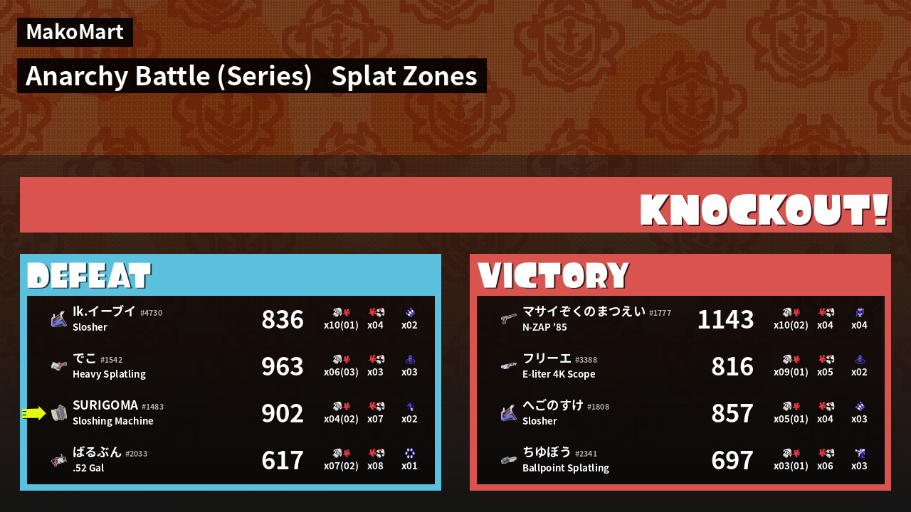| Medals | #2 Splat Zone Guard #2 Turf Inker #2 Splat Assister | ||