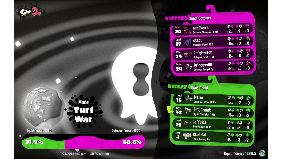 | Splatfest Power | 1,536.5 | |||||||||||||||||||||||||||||||