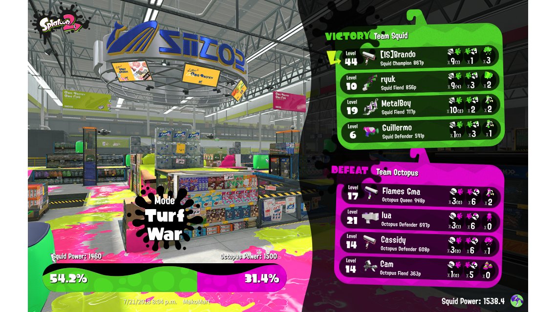 | Splatfest Power | 1,538.4 | |||||||||||||||||||||||||||||||