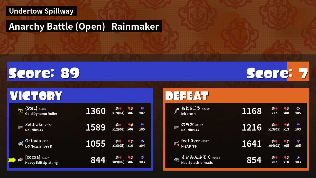 | Mode | Rainmaker - Anarchy Battle (Open) | ||