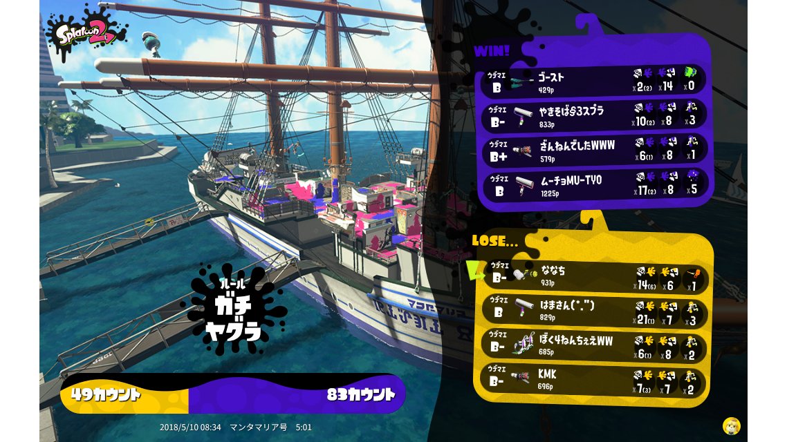 | Name | Weapon | Level | Rank | Inked | k+a/sp | k/d |