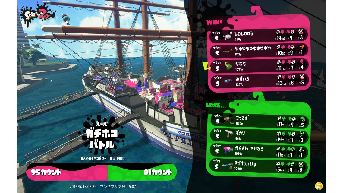 | Name | Weapon | Level | Rank | Inked | k+a/sp | k/d |