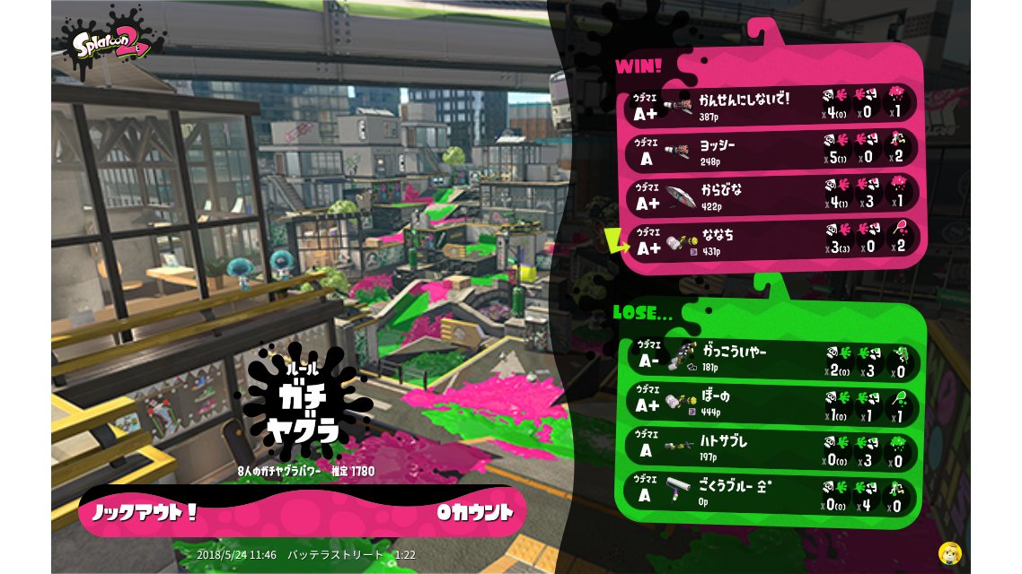 | Name | Weapon | Level | Rank | Inked | k+a/sp | k/d |