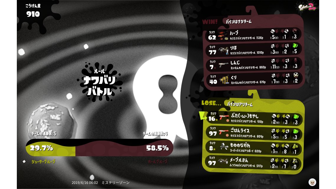 | Team パインはアリ シューターグループ Win Streak: 5 | 2,936 | 7 / 23 | 0.30 23.33% | ||||