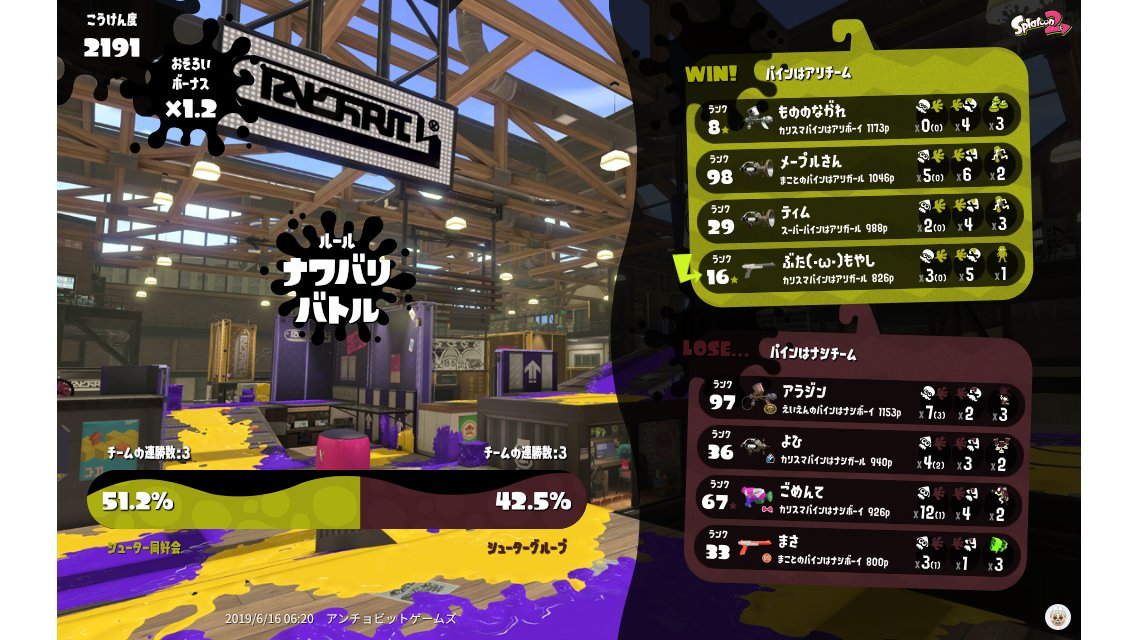 | Team パインはナシ シューターグループ Win Streak: 3 | 3,819 | 19 / 10 | 1.90 65.52% | ||||