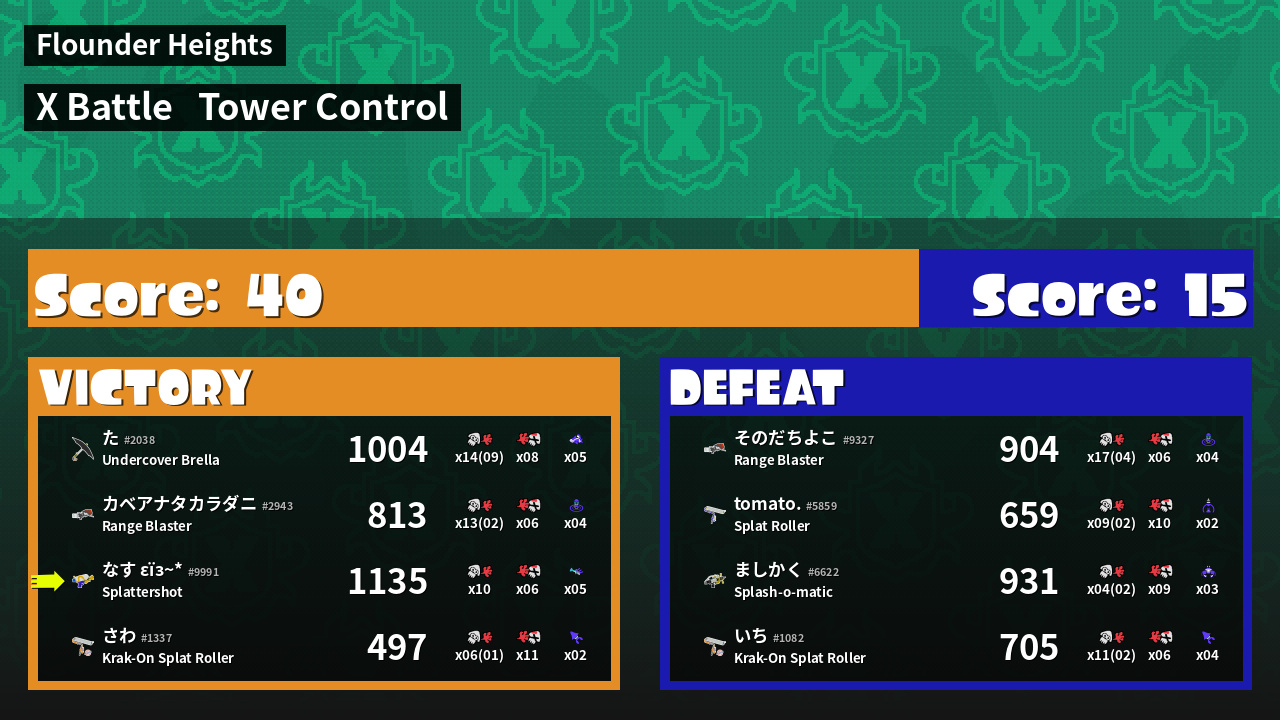 | Weapon | Splattershot ( Suction Bomb / Trizooka) | ||
