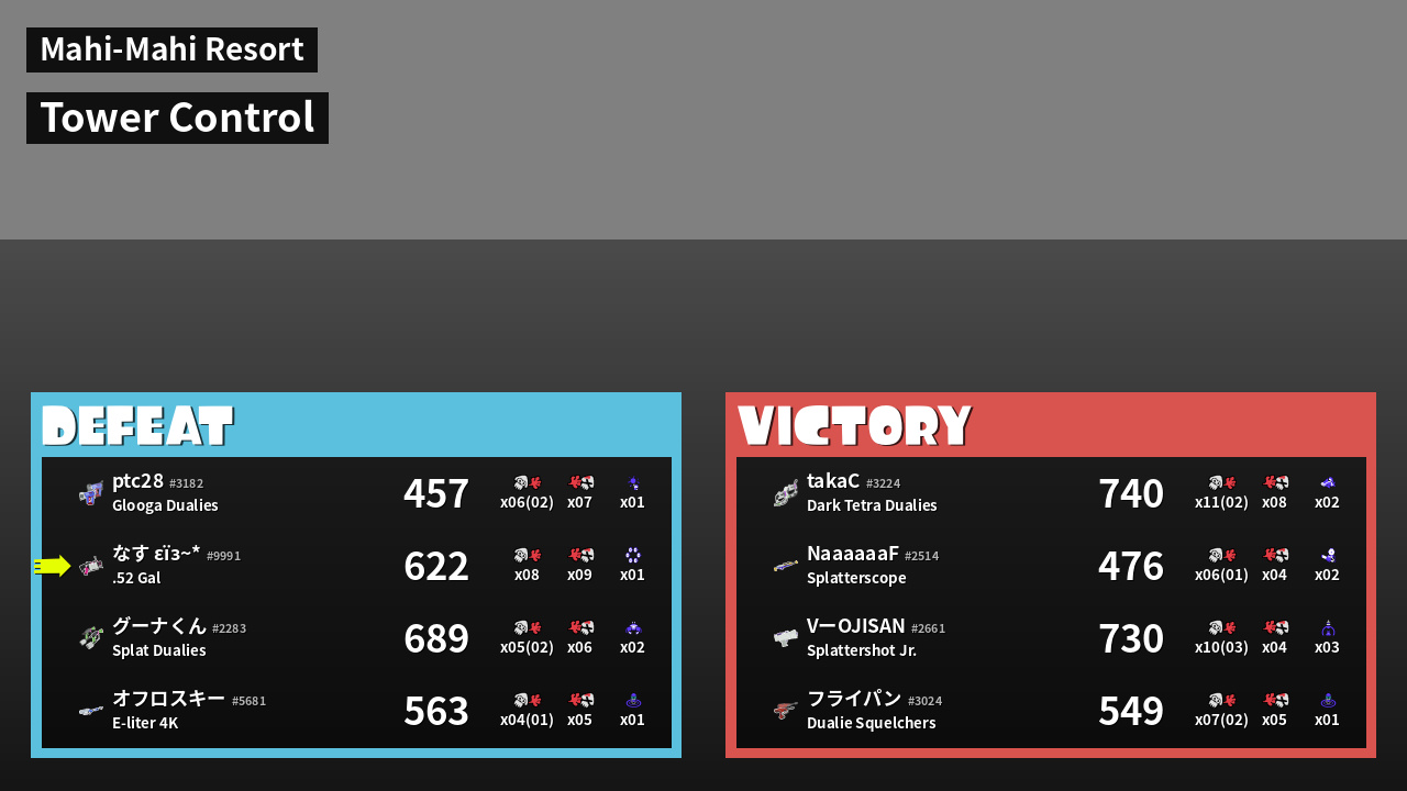 | Medals | #1 Overall Splatter #1 Enemy Splatter First Splat! | ||
