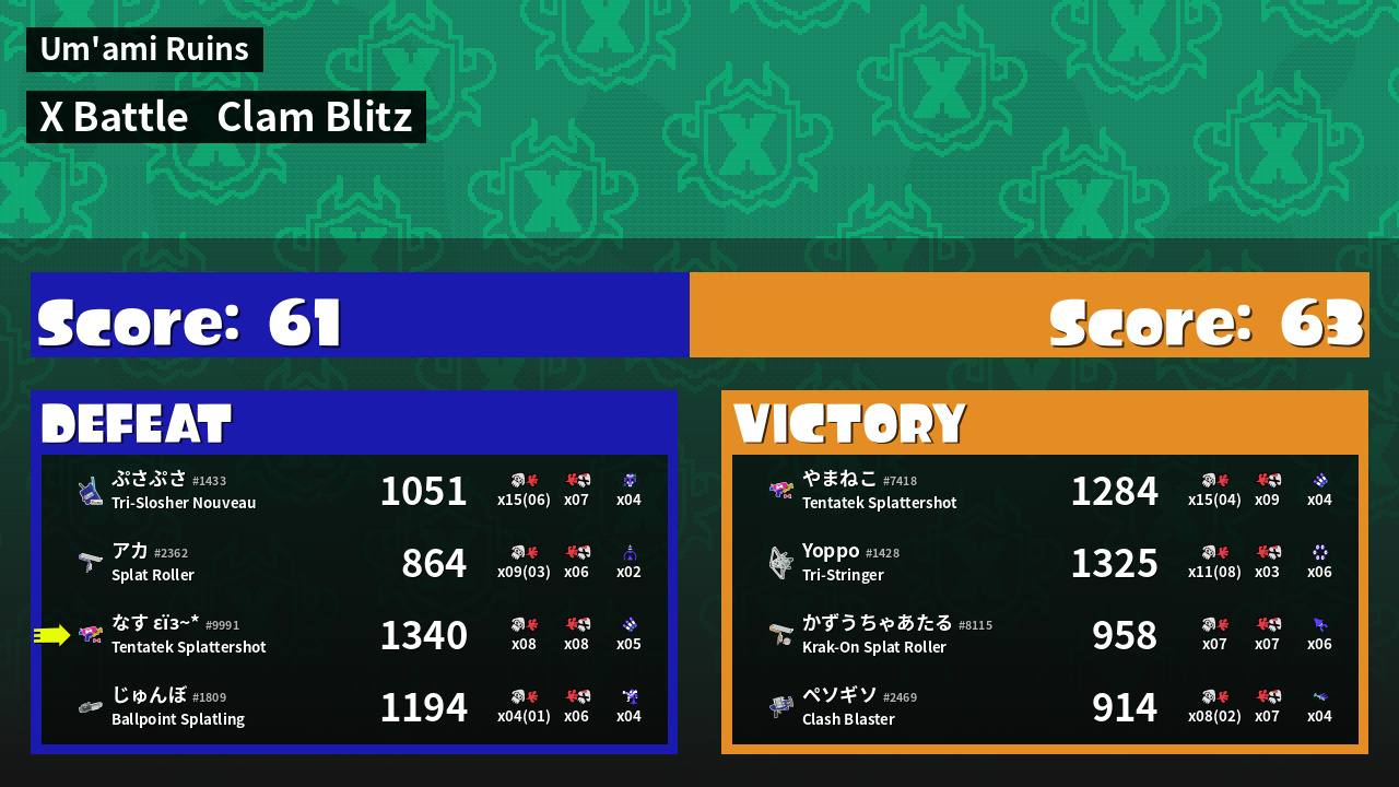 | Weapon | Tentatek Splattershot ( Splat Bomb / Triple Inkstrike) | ||