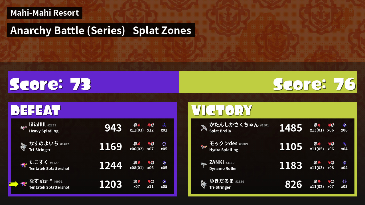 | Mode | Splat Zones - Anarchy Battle (Series) | ||