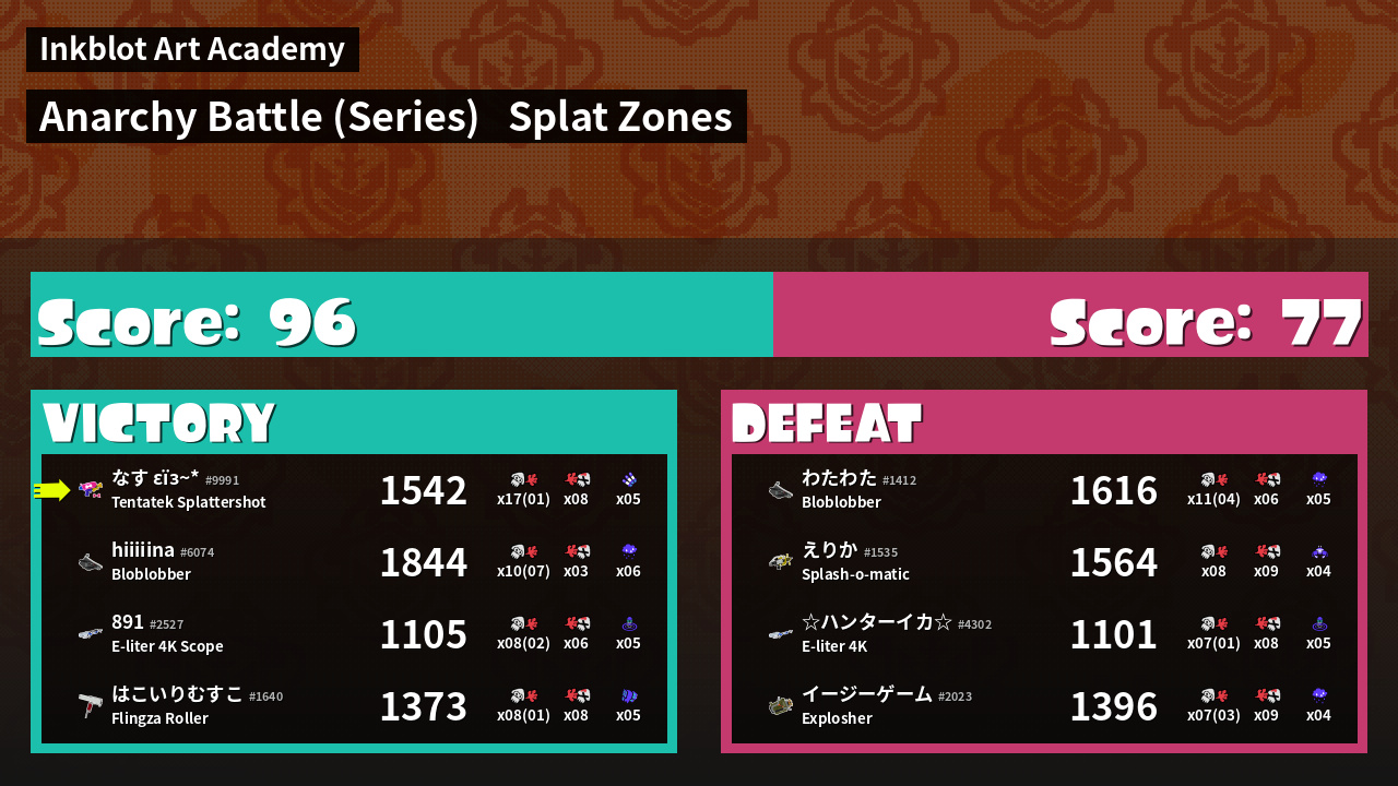 | Mode | Splat Zones - Anarchy Battle (Series) | ||