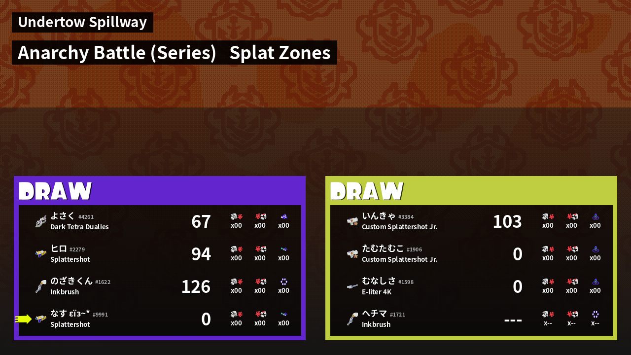 | Mode | Splat Zones - Anarchy Battle (Series) | ||