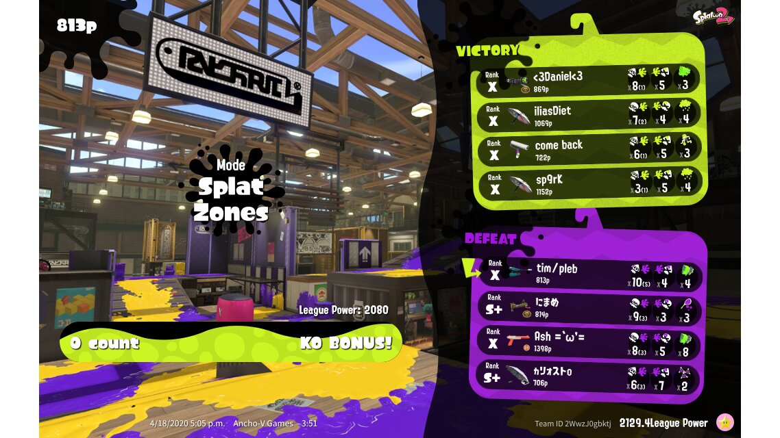| Mode | Splat Zones - League Battle (Twin) | ||||||||||||||||