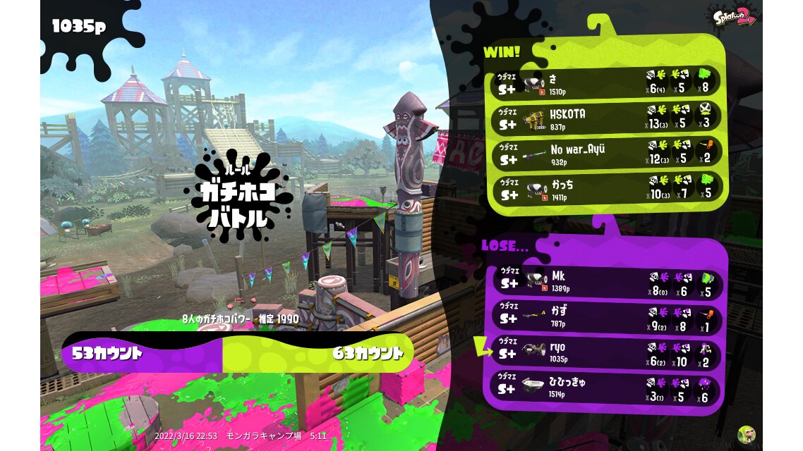| Name | Weapon | Level | Rank | Inked | k+a/sp | k/d |