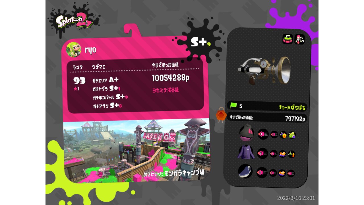 | Weapon | Sploosh-o-matic ( Curling Bomb, Splashdown) | ||||||||||||||||||||||||||||||||||