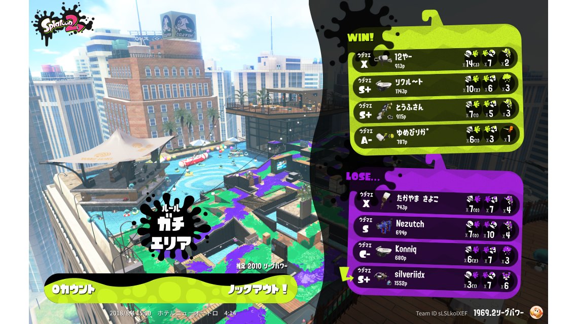 | Mode | Splat Zones - League Battle (Quad) | ||||||||||||||||||||||||||||||||||