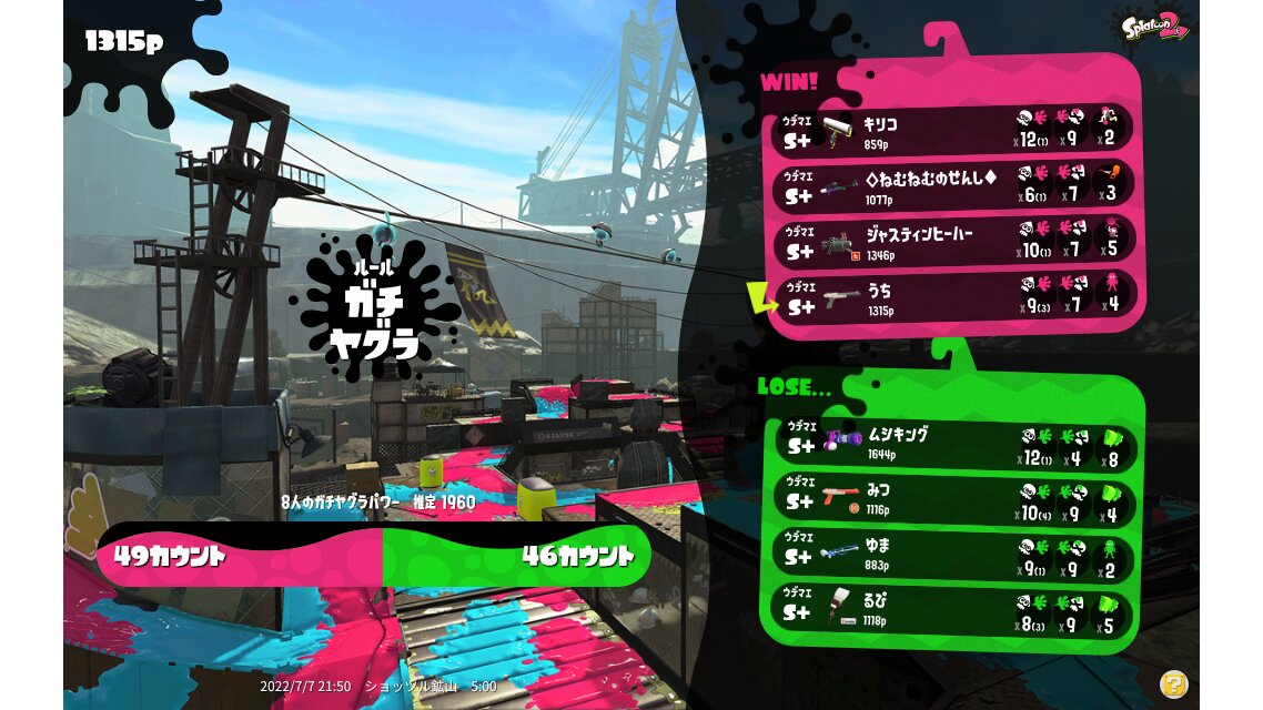 | Name | Weapon | Level | Rank | Inked | k+a/sp | k/d |