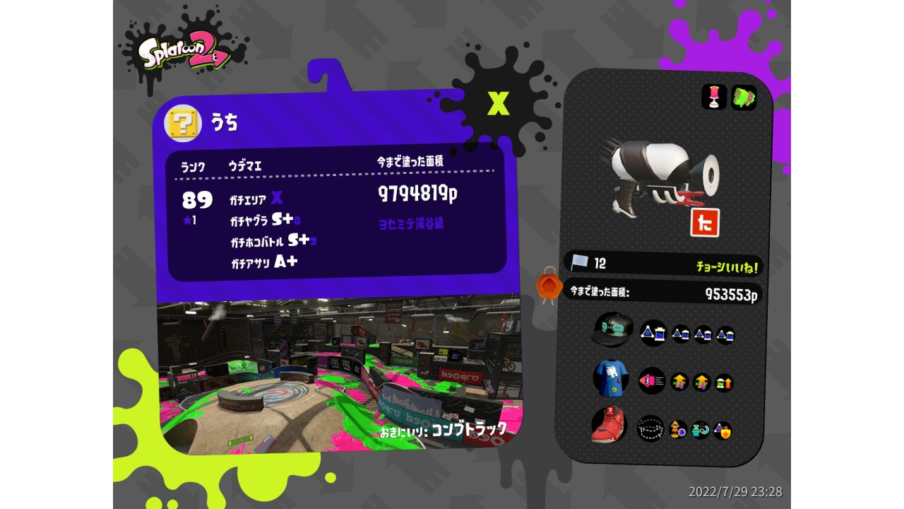 | SplatNet Battle # | 10,996 | |||||||||||||||||||||||||||||||||||||||||||