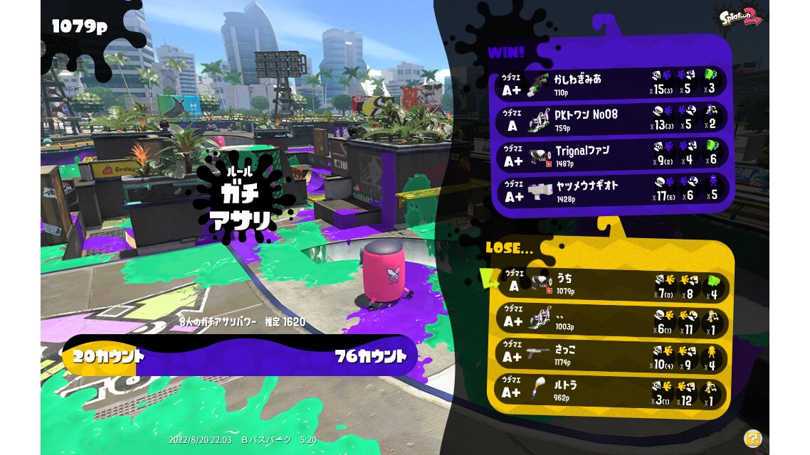 | Name | Weapon | Level | Rank | Inked | k+a/sp | k/d |