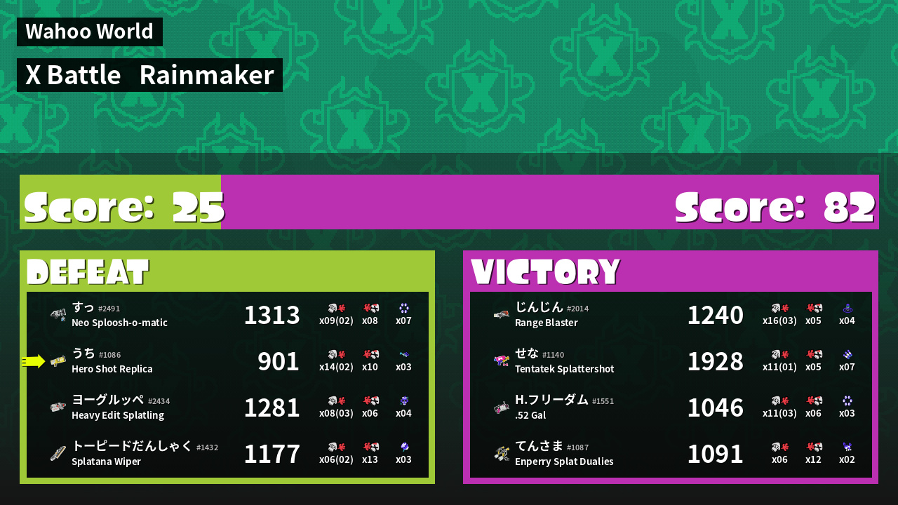 | Medals | #1 Overall Splatter #1 Enemy Splatter #1 Rainmaker Stopper | ||