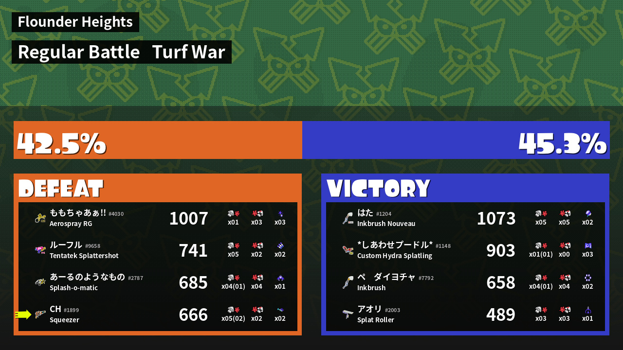 | Mode | Turf War - Regular Battle | ||