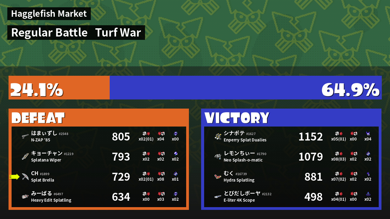 | Medals | #1 Overall Splatter #1 Splat Assister #2 Home-Base Inker | ||
