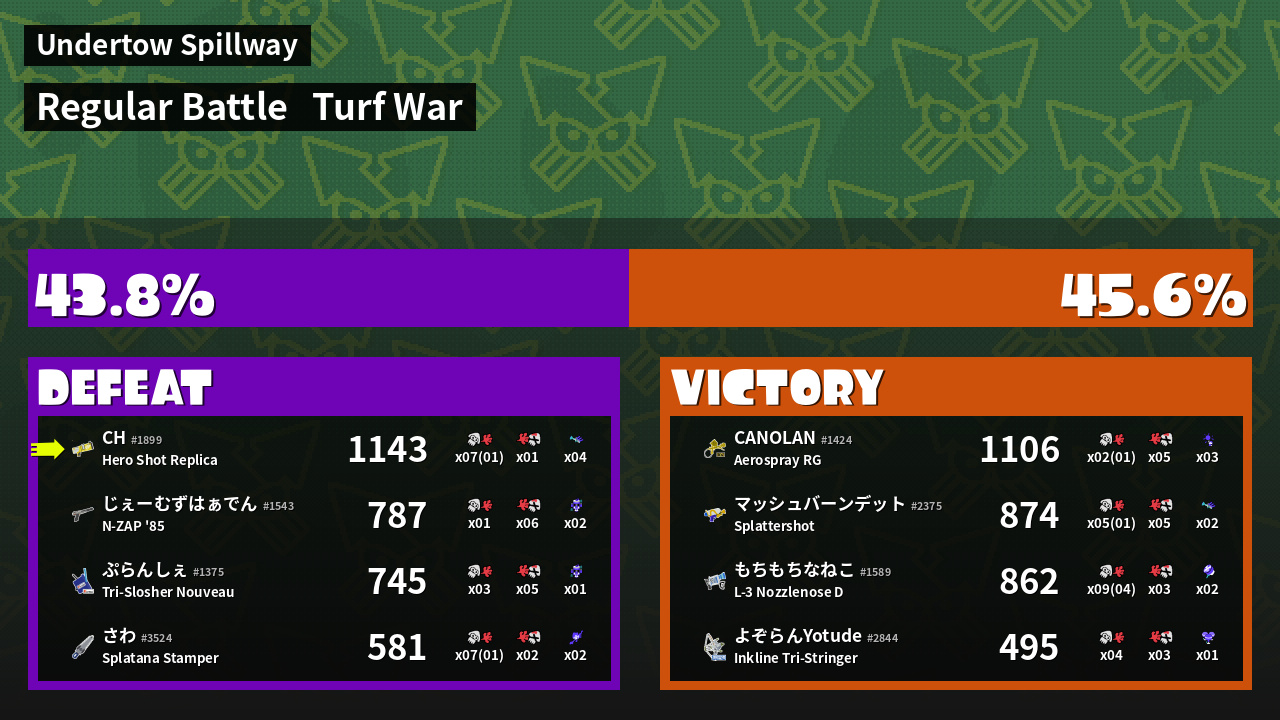 | Mode | Turf War - Regular Battle | ||