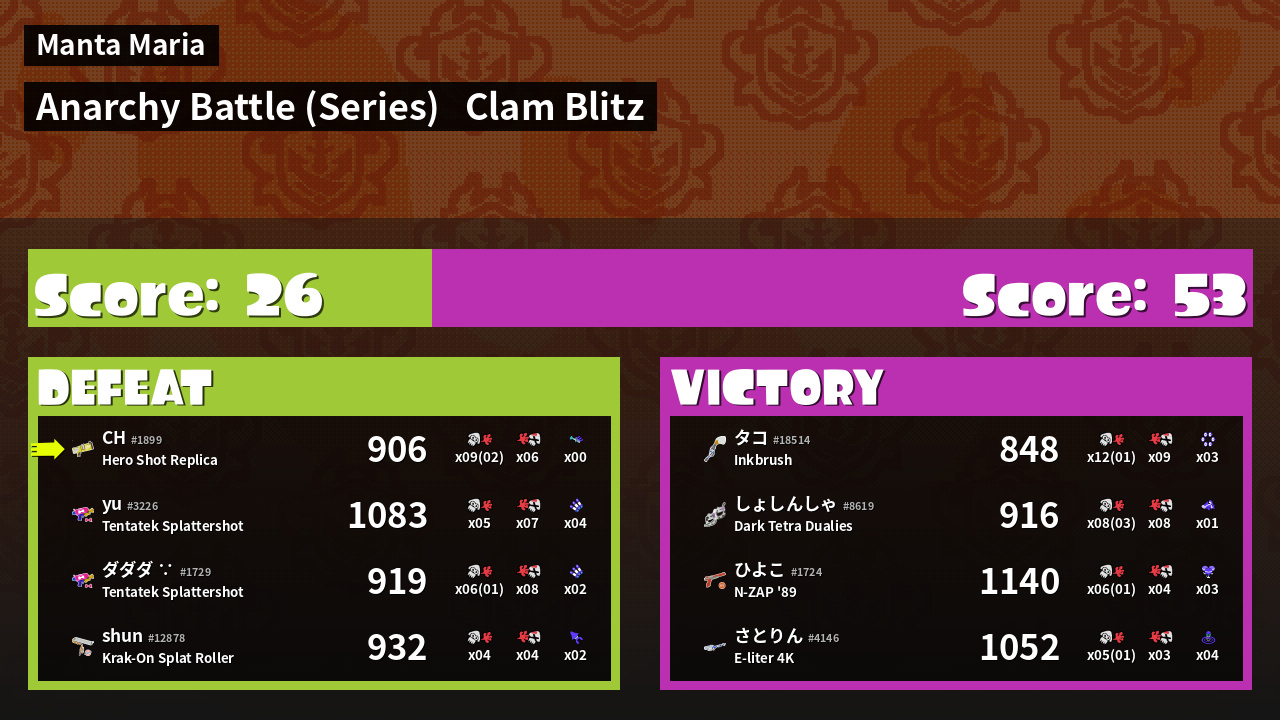 | Mode | Clam Blitz - Anarchy Battle (Series) |