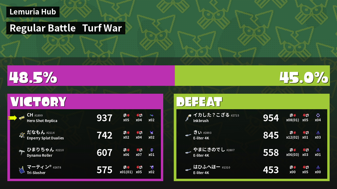 | Mode | Turf War - Regular Battle | ||