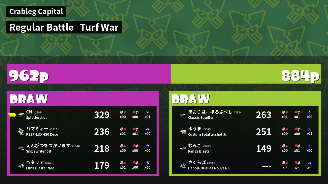 | Mode | Turf War - Regular Battle | ||