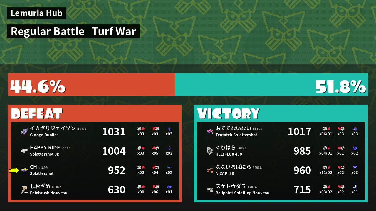 | Mode | Turf War - Regular Battle | ||